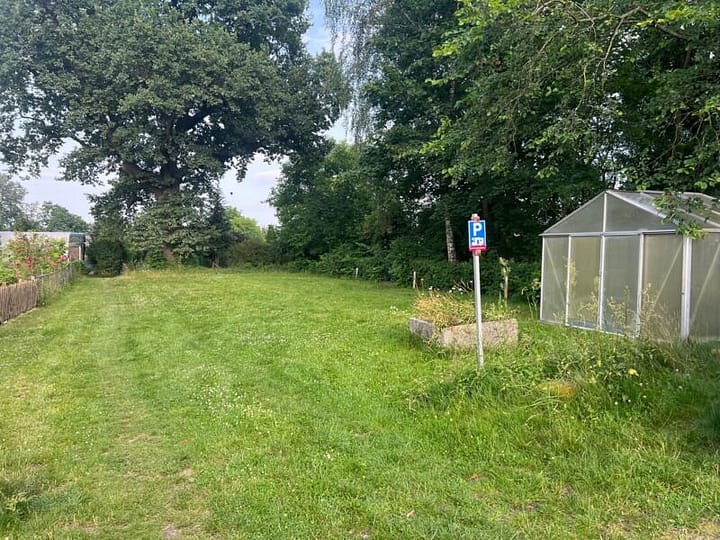 De parkeerplaats ligt op ongeveer 8 minuten lopen van de tramhalte. Het ligt op een verhard weiland op een voormalig boerderijterrein. De plaats is erg rustig, alleen de kikkers uit de vijver van de buren kwaken ’s nachts ;-). Er is een autowerkplaats op de boerderij waar ook instructie wordt gegeven. Er is ook een toilet en een wastafel. Geen mogelijkheid om het chemisch toilet af te voeren. Als u elektriciteit wilt, moet u € 5,- per dag betalen. Te betalen bij aankomst.