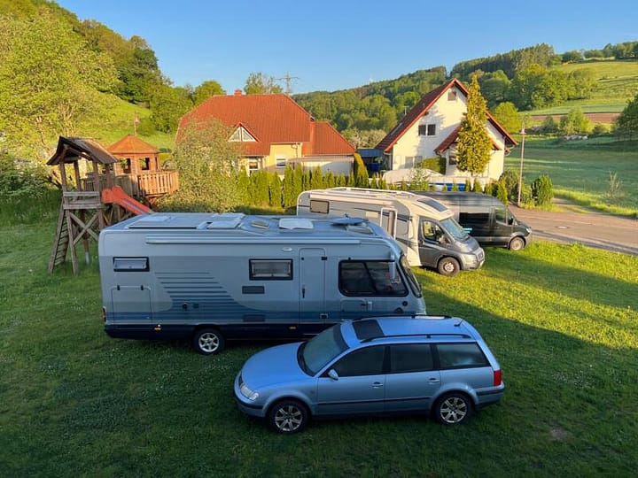 7 parkeerplaatsen aan de Steinbach, op een verharde weide. Energie: Water, afvalwater, 220 V elektriciteit aanwezig. Vrijetijdsbesteding: fietsen MTB-racefiets, wandelen, barbecuestation, kinderspeelplaats, winkelen Wasgau-markt.