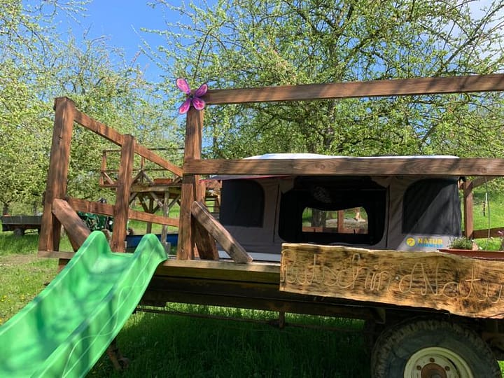 (D) Op zoek naar een avontuurlijke daktent? Voorwoord: Onze daktenten zijn vernoemd naar de appelsoorten die hier op de boerderij groeien – Welkom in het daktentenkamp hier op onze fruitboerderij in het Deggenhausertal! Kamperen, avontuur, time-out, natuur en heel veel plezier vind je bij ons in het daktentenkamp! ’s Ochtends rustig ontbijten in de daktent, lunchen op ons picknickplateau in de boomtoppen met kruiden uit de kruidenpotten en de avond afsluiten bij het kampvuur… Onze hangmatten nodigen uit om te ontspannen en als je sportief bezig wilt zijn u kunt bij ons een SUP huren en de Bodensee op het water verkennen, ’s nachts naar de wilde dieren luisteren en ’s morgens wakker worden met het getjilp van vogels midden in de prachtige natuur. Fietsen in het achterland en aan het Bodenmeer en te voet de mooiste hoekjes van het Deggenhausertal verkennen. Er zijn geen grenzen aan je dromen.