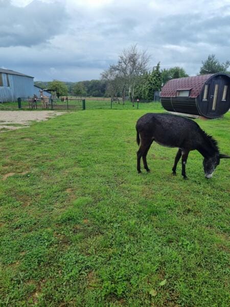 Ontdek Ferme la Ravena, een oase van rust gelegen aan de ingang van een charmant dorpje uit de Haute-Saon op een hoogte van 310 m, met prachtige panorama’s in het hart van de Zuidelijke Vogezen. Onze ezels zijn gemakkelijk toegankelijk en verwelkomen u met hun warme balken voor een authentieke ervaring midden in de natuur, ideaal voor een verblijf op een boerderij, een weekend op het platteland, een romantisch uitje of een ongewone familievakantie. Carole en Ghislain, gepassioneerd door de natuur en hun regio, bieden u een persoonlijk welkom, begeleid door onze 3 schattige ezels en onze 2 kleine pony’s. Geniet van momenten van verbondenheid door ze naar believen te borstelen voor hun grootste plezier (en dat van jou!) en ontdek de gezinsactiviteiten die onze paardenboerderij aanbiedt. Verken de regio via paardrijden, toeristische routes en landelijk erfgoed. La Ferme la Ravena is het ideale startpunt voor een verblijf gericht op groen toerisme, ecotoerisme en het ontdekken van de natuur. Sanitaire voorzieningen: Sanitairgebouw 24 uur per dag geopend met toilet, wastafel en douche Buitenspoelbak met afdruiprek en warm water Kraan en straal koud drinkwater De uitrusting: Grote schuur voor het stallen van fietsen, motorfietsen, quads of paardenkoetsen Weiland met schuilplaats voor uw paard (tegen meerprijs) en slaapplaats in de buurt Paardenaccommodatie voor een vakantie in de bergen met uw favoriete dier Barbecue beschikbaar Tafels en banken in onze “ongebruikelijke ton” en onder de hangar Koelkast aanwezig onder de hangar Folders met ideeën voor uitstapjes en activiteiten in de buurt, voor een ervaring van ontspanning en welzijn Boek nu uw verblijf bij Ferme la Ravena en beleef een uniek avontuur in harmonie met de natuur.