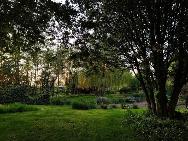 Onze grote, prachtige tuin grenst aan een weiland. Je verblijft in de tuin of misschien in de schapenwei. Je hoort vogels en kikkers en soms helemaal niks, dus als je van rust houdt… We hebben veel ruimte en bewust maar enkele plaatsen, zo kun je optimaal genieten van deze plek, van waaruit je heerlijk kunt fietsen en wandelen. Je bent dichtbij NP De Veluwezoom en ontdekt de prachtige Achterhoek.