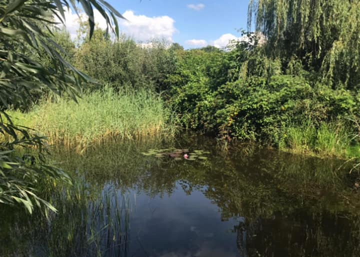 Ook is er op het weilandje een kikkerpoel en via een loopbruggetje kom je in een stuk bos. Mensen noemen het een paradijsje.