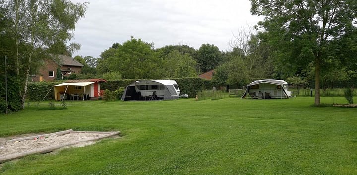 Onze camping ligt in een landschapstuin met mooie paadjes langs kleine veldjes en bossages.