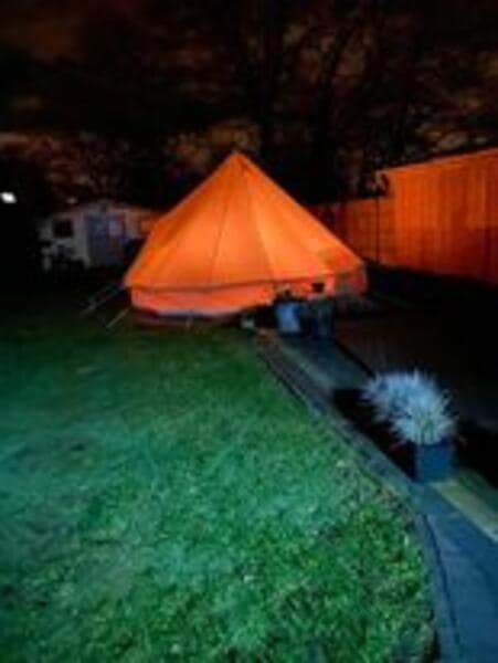 Wil je luxueus overnachten? Dat kan in onze glamping tent, volledig ingericht met boxspring-bed.