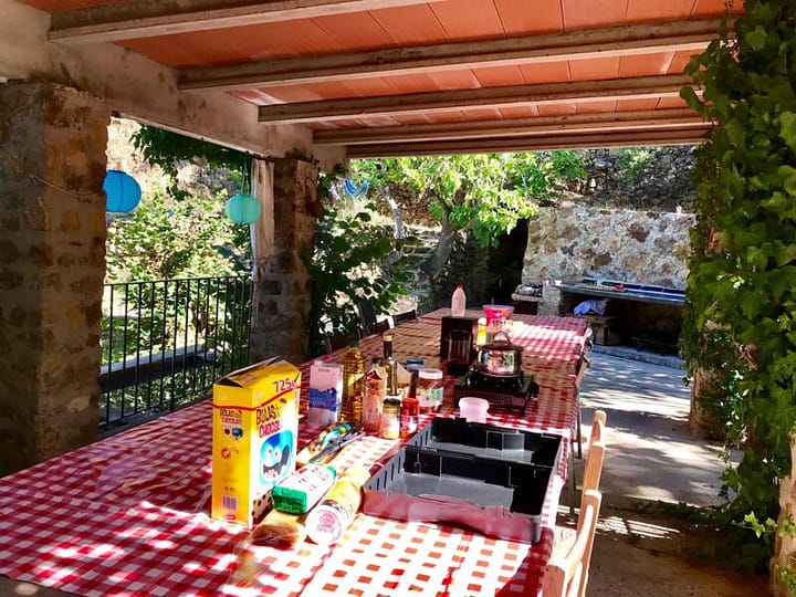 Gelegen aan de Costa Brava, boven een klein dorpje, ligt deze prachtige plek om te ontspannen en te genieten van de natuur. Vanaf hier starten diverse wandel- en mountainbikeroutes. Beneden ligt in ongeveer 10 minuten een groot zwembad, waar u tegen betaling gebruik van kunt maken. BBQ, Houtgestookte oven, Drinkwater, Warm water, Gasfornuis, Afwasbak, Keuken, Basis kookmaterialen, Koelkast, Borden en bestek, Koffie en thee, Eettafel, Waterkoker, Koffiezetapparaat, Vuurkorf, Open haard, Vuurschaal, Brandhout beschikbaar, Hottub, Sauna, Sport- en spelspullen, WiFi, Zwembad, Zwemvijver of rivier, Handdoeken, Beddengoed, kussen en dekbed, Hangmat, Sfeerverlichting, Trampoline, Toilet, Warme douche, Koude douche, Elektriciteit, Telefoon oplaadpunt, Oplader voor elektrische auto, RV elektriciteitsaansluiting, RV loosplaats, Elektrische kachel, Houtkachel, Huisdieren toegestaan, Overdekte keuken, Regenschuilplaats, Speelplaats voor kinderen, Dieren op het terrein, Parkeren op het terrein, Uitzicht op de velden, Uitzicht op de heuvels, Uitzicht op het meer, Uitzicht op de bergen, Uitzicht op de rivier, Uitzicht op de zee, Uitzicht op het bos, Uitzicht op zonsopgang, Uitzicht op zonsondergang, Buiten zitgedeelte, Binnen zitgedeelte, Picknicktafel, Afvalverwerking, Mobiele ontvangst, Naturisme toegestaan, Barrièrevrije toegang tot de kampeerplaats, Barrièrevrije toegang tot toilet, Barrièrevrije toegang tot de douche, Barrièrevrije toegang tot gebouwen, Paarden toegestaan, Stallen/Paardenweide, Fietsenstalling