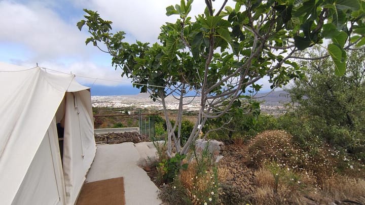 Het betoverende uitzicht op zee, omgeven door bergen en een groene oase, maakt de locatie bijzonder bijzonder. De katoenen tent zorgt voor een fijne sfeer, is 12 vierkante meter groot en is voorzien van zeer goede matrassen. Een geweldige plek om te ontspannen en voor uitstapjes over het hele eiland. Het zeer mooie strand van Puertito ligt op slechts 8 km afstand. We hebben veel verschillende soorten fruit en ook zelfgeproduceerde biologische wijn die u kunt proberen.