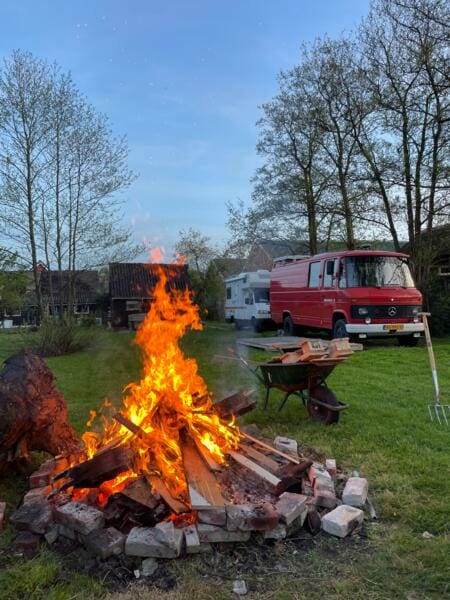 Vanaf de oprit kan je doorrijden over een verhard pad naar een heerlijke, beschutte plek onder de bomen. Je kunt je eigen kampvuur maken bij de vuurplaats en appels, peren en pruimen plukken van onze eigen fruitbomen. Geniet van de vele vogels, de scharrelende kippen en de rust. Vanwege de kippen zijn er helaas geen honden toegestaan.