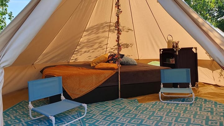 BBQ, Drinkwater, Warm water, Afwasbak, Koffie en thee, Eettafel, Open haard, Vuurschaal, Brandhout beschikbaar, WiFi, Hangmat, Sfeerverlichting, Toilet, Warme douche, Elektriciteit, Houtkachel, Huisdieren toegestaan, Regenschuilplaats, Parkeren op het terrein, Uitzicht op de velden, Buiten zitgedeelte, Binnen zitgedeelte, Picknicktafel, Afvalverwerking, Mobiele ontvangst