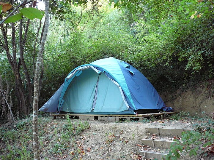 4 gezellige privé-ruimtes in het bos dicht bij het huis, een grote badkamer met warme douche (verwarmd met zonnepanelen, dus alleen warm water in de zomer…), een hangterras, parking. Relax en geniet!