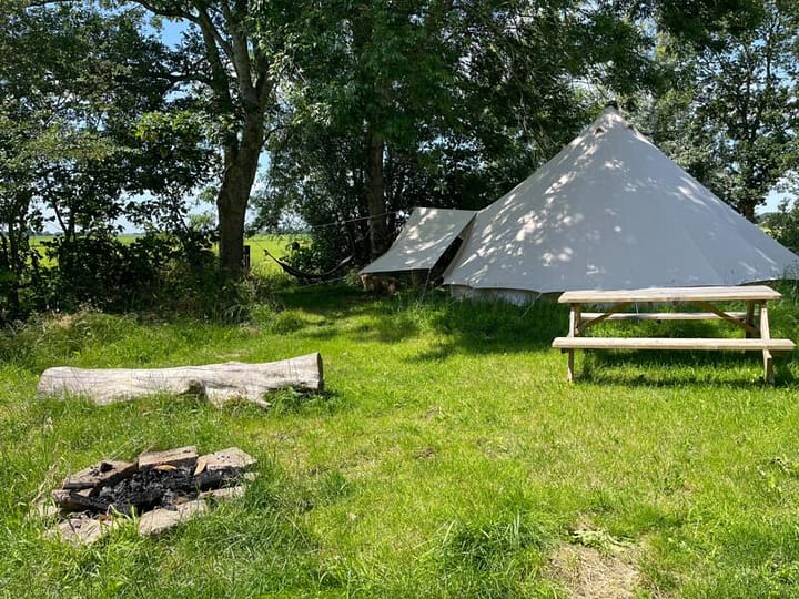 Drinkwater, Warm water, Afwasbak, Koelkast, Vuurkorf, Sport- en spelspullen, Trampoline, Toilet, Warme douche, Elektriciteit, Telefoon oplaadpunt, RV elektriciteitsaansluiting, RV loosplaats, Regenschuilplaats, Speelplaats voor kinderen, Dieren op het terrein, Parkeren op het terrein, Uitzicht op de velden, Uitzicht op zonsopgang, Uitzicht op zonsondergang, Buiten zitgedeelte, Binnen zitgedeelte, Picknicktafel