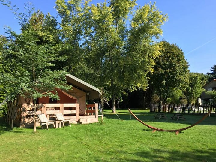 La Nozillière is een kleine, charmante familiecamping gelegen in Marval-Milhaguet, middenin het Parc Naturel Régional Périgord Limousin op de grens van de Haute-Vienne en de Dordogne. Op deze camping staan 9 stijlvol ingerichte safaritenten (tot 5 personen), 15 ruime en niet-afgebakende kampeerplaatsen (300 m2 per plek) én een sfeervolle 4-persoons gîte ‘Le Bonheur’ met privéterras. Tijdens de warme zomerdagen kun je lekker afkoelen in het zwembad.