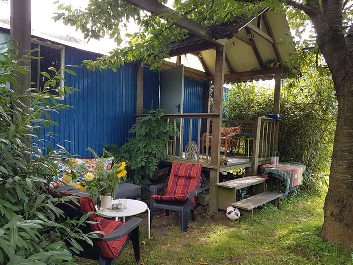 Mijn bouwtrailer en ik kijken uit naar uw bezoek. Aan het begin van het seizoen heb ik iets geüpgraded en een slaapbank gekocht met een slaapoppervlak van 1,40 m. Er zijn ook slaapmatten of luchtbedden. Beddengoed is niet aanwezig. Je moet dus slaapzakken meenemen. De keuken is voorzien van een koelkast, gasfornuis en serviesgoed. Stroomaansluiting aanwezig. De aanhanger biedt eenvoudige accommodatie voor (door)fietsers. Hij staat achterin, rustig in onze tuin. Je buren zijn onze 5 kippen.