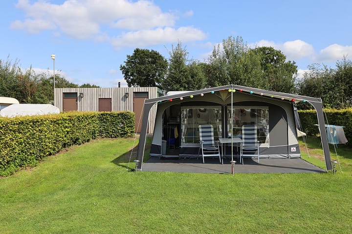 Ruime kampeerplaats met 8 ampère elektra en privé sanitair.