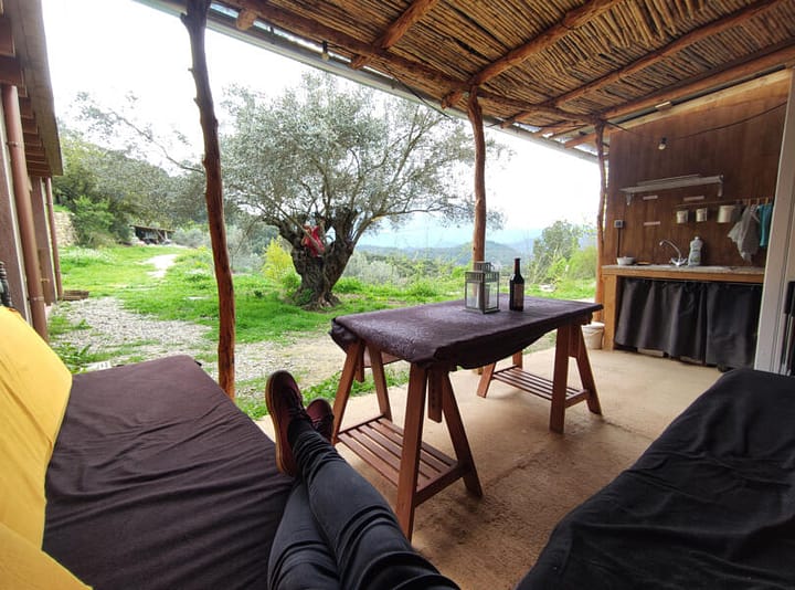 De boerderij heeft 14 hectare bos, met een indrukwekkend uitzicht op de magische berg Montserrat. We leven in de natuur en met de natuur, we hebben dieren, een tuin… U kunt genieten van grote stilte, wandelingen in het bos. We hebben een zwembad om af te koelen, een barbecue en een prieel met hangmatten om uit te rusten in de frisse lucht. Douches en toiletten zijn beschikbaar. En een keuken. We bieden ook: menu, ontbijt, ontspannende massage. Er zijn veel excursies zowel te voet als binnen een paar kilometer van de plaats. We hebben extra kamers te huur. BBQ, Houtgestookte oven, Drinkwater, Warm water, Afwasbak, Keuken, Basis kookmaterialen, Koelkast, Borden en bestek, Koffie en thee, Eettafel, Waterkoker, Vuurkorf, Open haard, Vuurschaal, Brandhout beschikbaar, WiFi, Toilet, Warme douche, Koude douche, Elektriciteit, Telefoon oplaadpunt, Houtkachel, Overdekte keuken, Regenschuilplaats, Speelplaats voor kinderen, Dieren op het terrein, Parkeren op het terrein, Buiten zitgedeelte, Binnen zitgedeelte, Picknicktafel, Afvalverwerking, Paarden toegestaan, Fietsenstalling