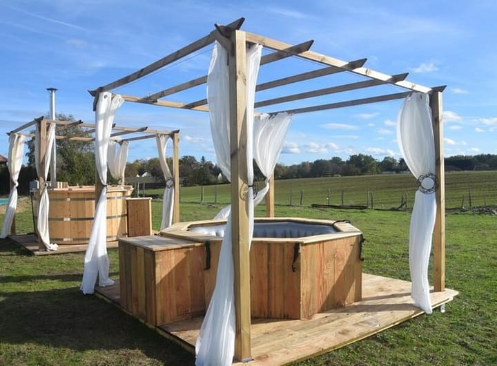 Welkom in ons ruime chalet midden in de natuur. Het is geschikt voor maximaal 7 personen en een ideale uitvalsbasis voor een vakantie vol ontspanning en gezelligheid. Laat u betoveren door de gastvrije sfeer en de gezellige ambiance, maar ook door de privéjacuzzi en de balneotherapiedouche Dankzij de ruime ruimtes en de warme sfeer is dit de ideale plek voor een onvergetelijk uitje met familie of vrienden. Geniet van onze volledig uitgeruste keuken, de barbecueplek in de buitenlucht en ontspan in onze comfortabele kamers na een dag vol buitenavonturen. Of u nu op zoek bent naar rust en stilte of naar buitenactiviteiten, ons chalet is de perfecte uitvalsbasis om de prachtige omgeving van de regio te verkennen. Als u liever de betoverende wereld van onze heksenhut betreedt, waar magie en volheid u opwachten voor een originele en onvergetelijke ervaring. Waar elk detail is uitgedacht om u mee te nemen naar een andere wereld vol mysteries. Of u nu van sprookjes en legendes houdt of gewoon op zoek bent naar een unieke ervaring, onze heksenhut is de perfecte plek voor een tijdloos uitje. Ontdek de betoverende omgeving, ontdek de geheimen van de omringende natuur en laat u verrassen door de zachte levenswijze die u omringt en meeslepen door de magie. Welkom in onze geodetische koepel, een romantisch toevluchtsoord onder de sterren. Geniet van zoete intimiteit en vier de liefde. Ontspan in onze buitenwellnessruimte, elk moment is een uitnodiging tot ultieme ontspanning, tot volledige overgave aan het welzijn. Of u nu na een intensieve week even wilt bijkomen of uzelf wilt trakteren op een bijzonder moment van rust: onze oase van ontspanning midden in de natuur belooft een unieke ervaring te worden. Kom weer in contact met uzelf en revitaliseer uw lichaam en geest in ons toevluchtsoord van rust. Kom en beleef een prachtige ervaring en laat de natuur voor u zorgen. De SAUNA, met zijn rustgevende buitensfeer, neemt met elke ademhaling de stress en spanningen van het dagelijkse leven weg. Het NORDIC BATH is perfect verwarmd en biedt een ongeëvenaarde zintuiglijke ervaring, waarbij contact met water en zuivere lucht lichaam en geest regenereert. De JACUZZI is gelegen in een schilderachtige omgeving, waar het geruis van de bomen en het gezang van de vogels uw natuurlijke soundtrack vormen. Camperplaats Bivakgebied Petanquebaan Keuken Elektriciteit