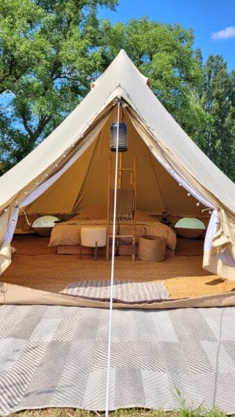 Beleef de rust en schoonheid van de groene natuur in een romantishe sfeer op ons uitnodigende (leeg) veld. Onze locatie, gelegen in het charmante dorpje Veldegem in het hart van West-Vlaanderen, bestaat uit twee luxe glamping tenten en een gemeenschappelijke zone met oa een shelter en vuurschaal. Ook is er een warme douche ter beschikking.