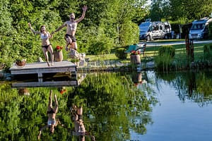 Een verrassende oase van rust en groen. Staanplaatsen vrij te kiezen. Gemoedelijke sfeer en een hartelijke ontvangst. In het meertje kan worden gevist en gezwommen.