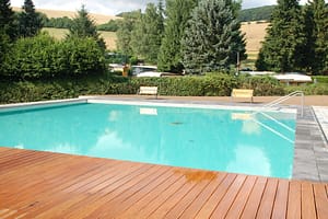 Zeer grote, rustige camping met veel vaste staanplaatsen in het midden van een natuurgebied. De camping heeft een eigen zwembad.