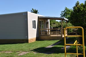 Luxe lodge voor 5 personen met veranda Moderne lodge met 2 slaapkamers.Open keuken met vaatwasser, koelkast, kookgelegenheid, royale inventaris, waterkoker, koffiezetapparaat...