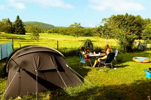 Luxueuze familiecamping waar de natuur centraal staat. Overdekt zwembad en buitenzwembad. Buiten de camping een centrum voor boomklimmen, kanoën, kajakken en speleologie....