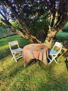 Wij bieden u een rustige en schaduwrijke locatie met een lichte helling (ik kan wielblokken lenen om de bestelwagens waterpas te zetten). Er is een hangmat beschikbaar om te...