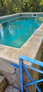 Eigen grond (circa 1 hectare) met zwembad, jeu de boulesbaan en boerderijtje met toiletten, douche, buitenkeuken. 500 euro per week BBQ, Warm water, Gasfornuis, Afwasbak,...