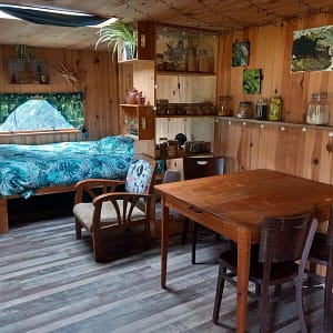 Op een kleinschalige en persoonlijke camping staat voor je gereed een compleet plaatje voor ultiem kampeergeluk: een kampeerwagen met een kingsize bed en een schattig rood huisje,...