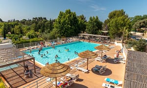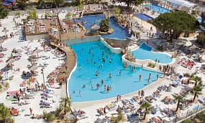 Camping bij , Languedoc-Roussillon in Frankrijk. Speels gebouwd zwembad met lazy river. 8 km van zee, tussen strand en bergachtig achterland. Ideale camping voor gezinnen met...