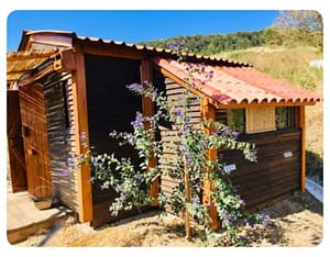 Wij bieden ontbijt en maaltijden op aanvraag. Geserveerd in de hut. Plantaardige en biologische voeding, en op verzoek altijd verse eieren van de boerderij :-) In het hart van een...