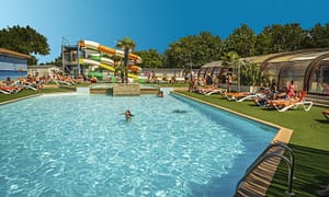 Camping bij , Bretagne in Frankrijk. Zwembad met vele gave glijbanen. Verwarmd en overdekt zwembad. Kinderclubs, springkussens, multisportterrein. Op een paar kilometer van...