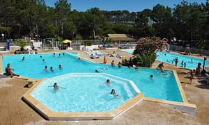 Camping bij Lège-Cap-Ferret, Zuid-West Frankrijk in Frankrijk. Heerlijk schaduwrijk park. Waterpark met spraypark. Animatie voor groot en klein. Prima fietsen en wandelen in de...