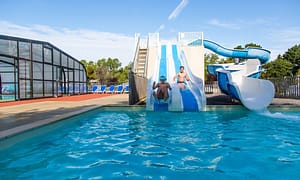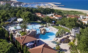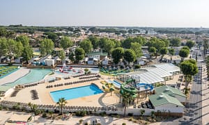 Camping bij Serignan Plage, Languedoc-Roussillon in Frankrijk. Camping met topfaciliteiten. Met waterspeeltuin. Zwembad met glijbanen en direct aan zee. In Sérignan-Plage met...