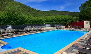 Camping bij Joyeuse, Ardèche in Frankrijk. Verwarmd zwembad, kinderbadje en bubbelbad. Kleine, familiale camping met speeltuin. Vissen in de rivier op 50mtr. Iedere woensdag...
