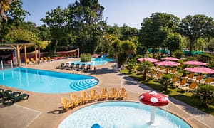 Camping bij Cap d'Agde, Languedoc-Roussillon in Frankrijk. Verwarmd zwembad met leuk thema. Mooie Balneo-spa. Professioneel animatieteam. Op 2 km. van het centrum van Cap d'Agde.