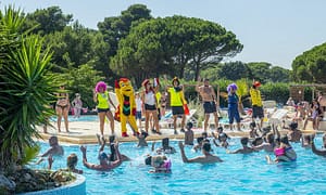 Camping bij , Charente-Maritime in Frankrijk. Apart kinderbad. Probeer eens aquarobics. Animatie voor alle leeftijden. Leuk: dierentuin Palmyre Zoo.