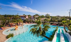 Camping bij , Languedoc-Roussillon in Frankrijk. Verwarmd aquapark met schuimparty's. Maar 300 meter van zee. Speeltuin, multisport, jeu de boules. Wandel of fiets langs het Canal...