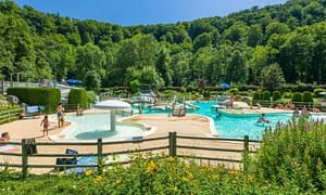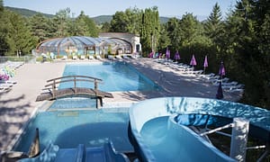 Camping bij Vernioz, Franse Alpen in Frankrijk. Heerlijk groene camping met fijne sfeer. Zwembad met glijbanen en overdekbaar deel. Tennis en vissen. Vlakbij mooie stad Vienne.