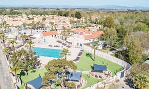Camping bij Saint Cyprien-Plage, Languedoc-Roussillon in Frankrijk. Mooi zwembad omringd door palmbomen. Uitstekend restaurant. Vlakbij Aqualand en St. Cyprien-Plage. Direct aan...