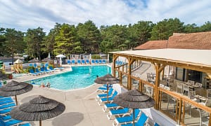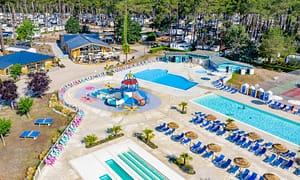 Camping bij , Zuid-West Frankrijk in Frankrijk. Onder hoge pijnbomen, met groot zwembad en spraypark. 5 km van zee, neem de gratis shuttlebus. Animatie voor kids van 1-14 jaar....
