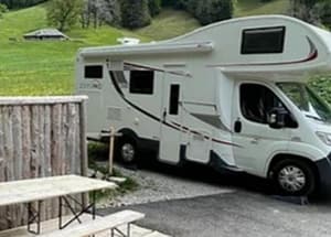 Midden in de bergen: Warm welkom! Hier voorzie ik je van een kleine maar fijne tent en camperplaats met uitzicht op de Jungfrau. Uitgerust met vers drinkwater is mijn staanplaats...