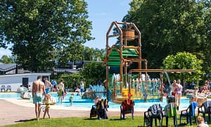 Camping bij , Gelderland in Nederland. Vakantiewoningen in bosrijke omgeving. Verwarmd buitenbad en waterglijbaan. Animatie, speeltuin, pannaveld, basketbal. Verken bossen, heide...