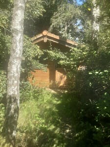 Tuinhuis (6,5 m²), achteraan in een eco-natuurtuin, op 40 meter van de woning en 60 meter van de steenweg. Heel veilig. Volop natuur in omgeving en tuin. 's Nachts vrij rustig,...