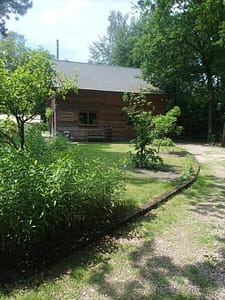 Zelf gebouwde houten hut ( 17 m2 binnenruimte en 8.5 m2 terras) aan de rand van een klein bos. De hut is gelegen in onze grote tuin waar de privacy gegarandeerd wordt. Het is zeer...
