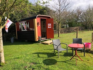 Slaap in een echte houten pipowagen of slaap in een ruime tent. Tuinbadkamer met zicht op de Brabantse kouter. Een kampeerverblijf met alles wat je nodig hebt als tussenstop op je...