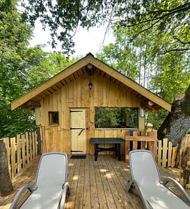 Beleef een unieke ervaring door te verblijven in onze charmante houten hutten, hooggelegen of niet, gelegen aan de rand van een visvijver en aan de rand van het bos. Gemaakt met...