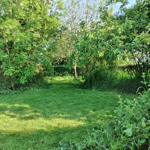 onze tuin is een inspirerende avontuurlijke plek. een grote moestuin, een kampvuurplaats, zicht op het meer, boomhut, sauna en een huisje op wielen. we hebben een buitentoilet,...