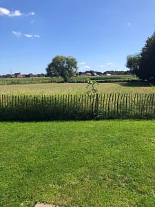 Mooi gazon in de tuin met uitzicht op weiland en bos. De weide is met de auto te bereiken. Een zitplaats met grill mag gedeeld worden. Toilet en douche bevinden zich in het huis....