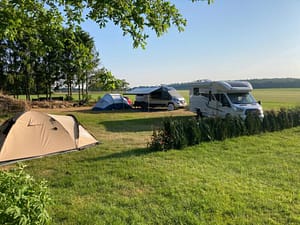 Plaats je tent met een vrij uitzicht op het zuiden. De hele dag zon maar ook voldoende schaduw mogelijk. Op fietsafstand van Havelte, Giethoorn, Steenwijk of Meppel. Centrum en...