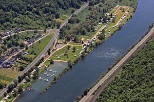De camping is een langgerekt vlak terrein aan de Moezel, tussen een weg en de rivier. De jaarplaatsen zijn aan de beide uiteinden van de camping. Er is een haventje en een...