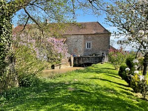 Sigy Kamperen bij de historische molen uit de 14e eeuw in Bourgogne Franche-Comté